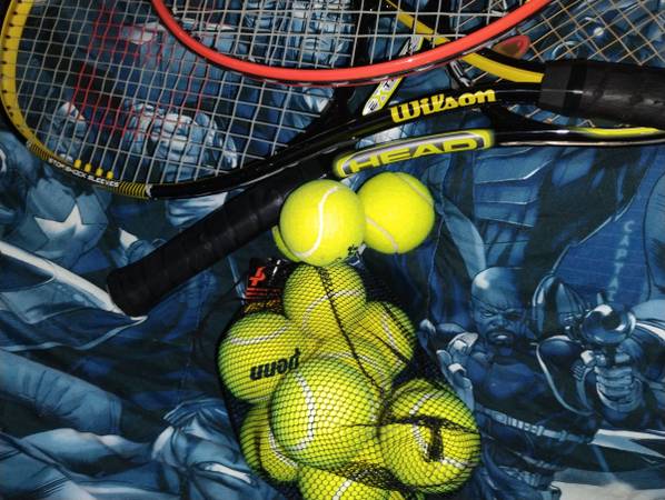 Tour team professional Head tennis bag with three rackets and balls the bag is pink